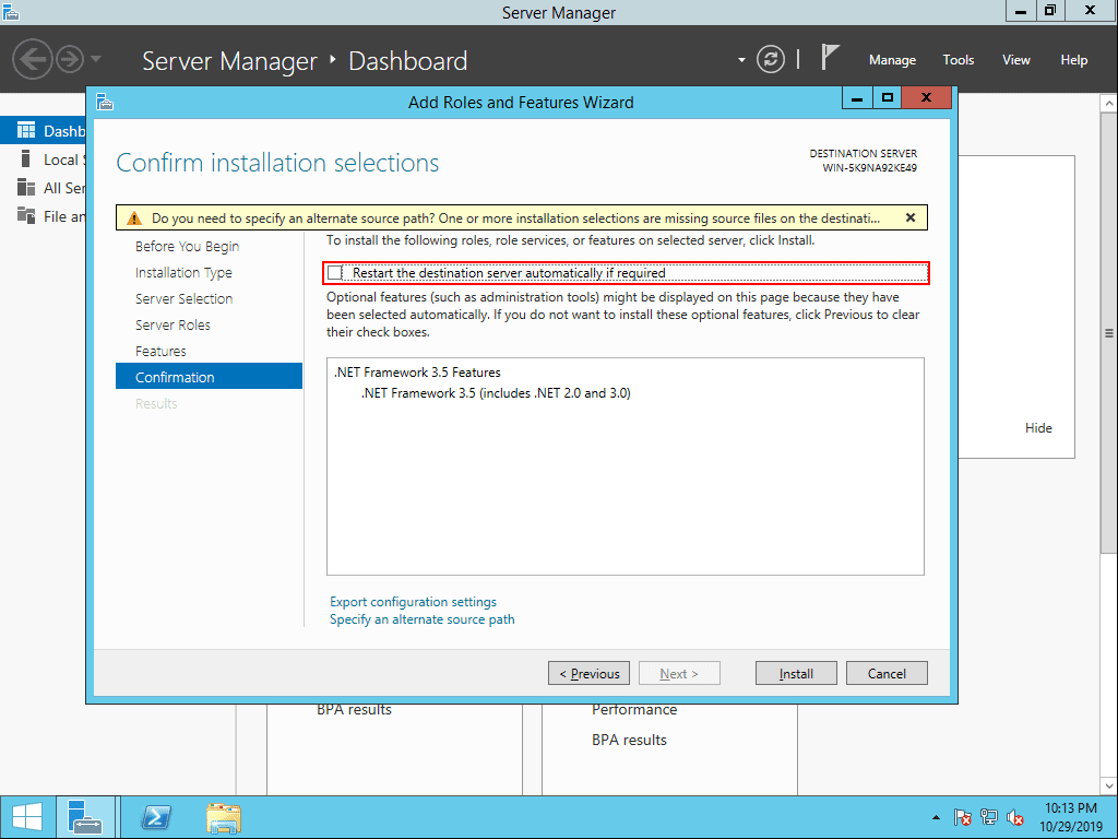 Bu adımda kurulacak olan servis veya özellikler listelenecektir. Kurulum işlemine başlamadan önce “Restart the destination server automatically if required” (Hedef bilgisayarın ihtiyacı varsa, otomatik olarak yeniden başlat) seçeneğini seçiyoruz.